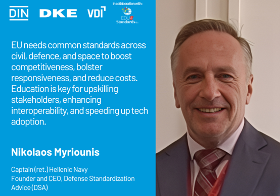 Defence Standardization Advice is proud to announce that Mr Nikolaos Myriounis, DSA Founder, has been invited by the German Institute for Standardisation (DIN) to address an impulse statement on Dual-Use Standardization Challenges during the German Digital Forum workshop on 17th October 2025. Stay tuned for more information about this event.